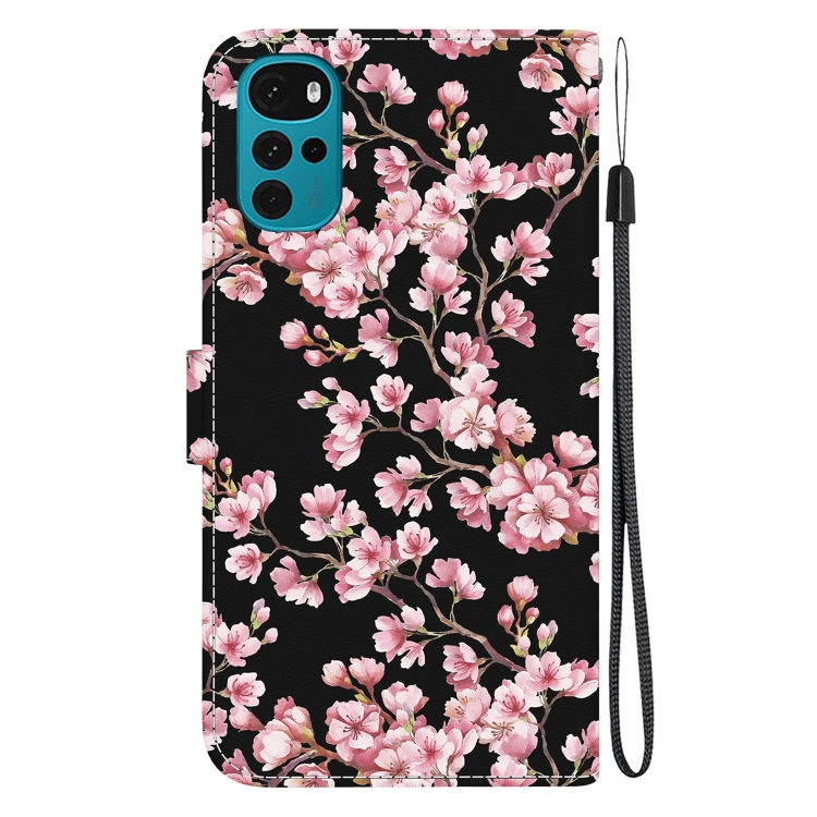 Funda de Cuero para Motorola Moto G22 con Dibujo Coloreado y Textura de Cristal (Flor de Ciruelo)