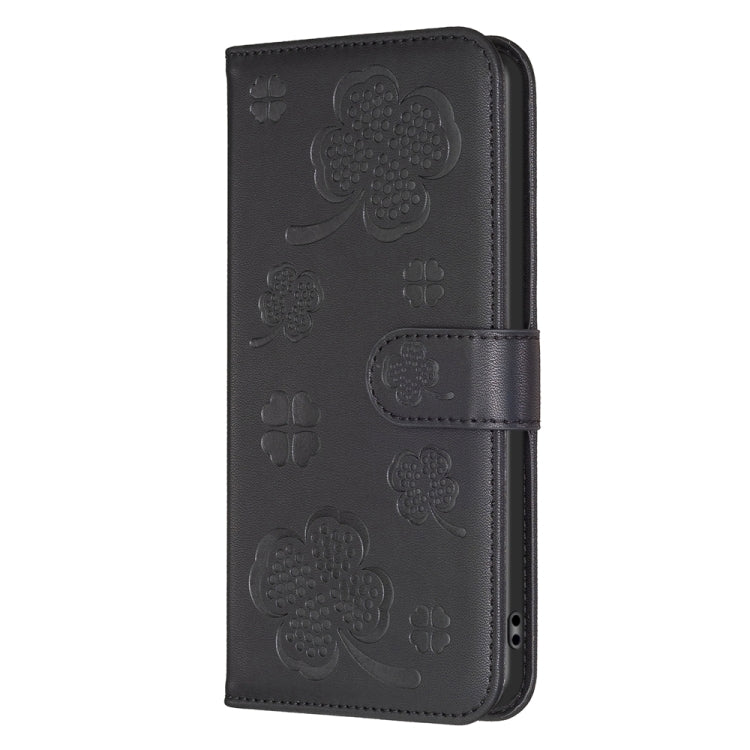 Funda de Cuero para Motorola Moto G22 con Relieve de Cuatro Hojas (Negro)