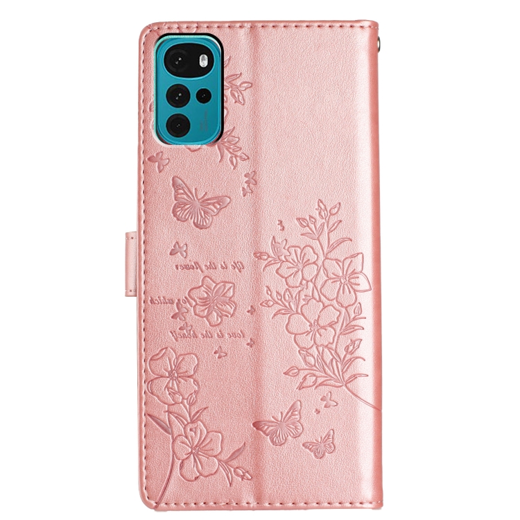 Funda de Cuero para Motorola Moto G22 con Mariposas y Flores (Oro Rosa)