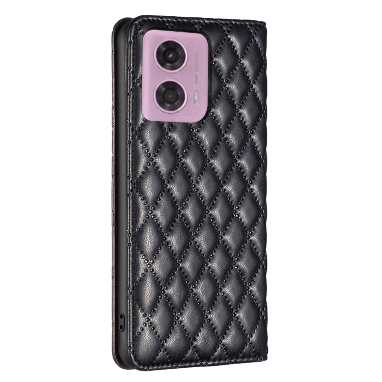 Funda para Motorola Moto G24 con Tapa de Cuero Magnético y Diseño Diamond Lattice (Negro)