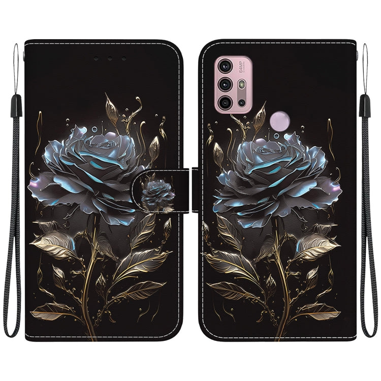 Funda para Motorola Moto G30 G10 G20 Cuero con Dibujo Coloreado y Textura de Cristal (Rosa Negra)