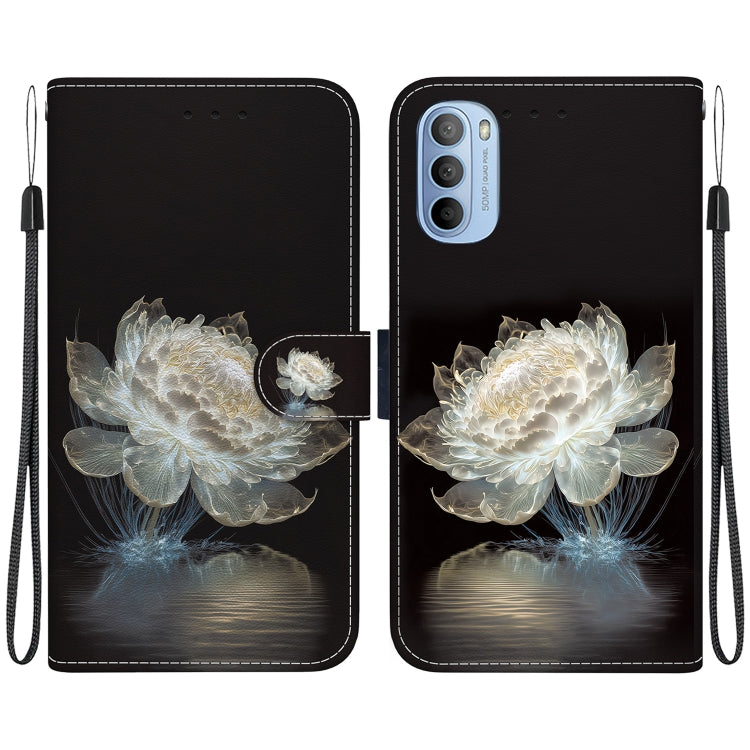 Estuche de Cuero para Motorola Moto G31 / G41 con Dibujo Coloreado y Textura de Cristal (Peonía de Cristal)