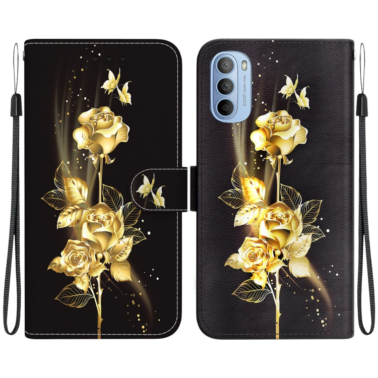 Funda para Motorola Moto G31 / G41 de Cuero con Dibujo Coloreado y Textura de Cristal (Mariposa Dorada Rosa)