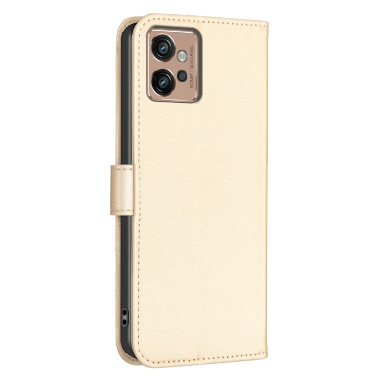 Funda de Cuero para Motorola Moto G32 4G con Relieve de Cuatro Hojas (Dorado)