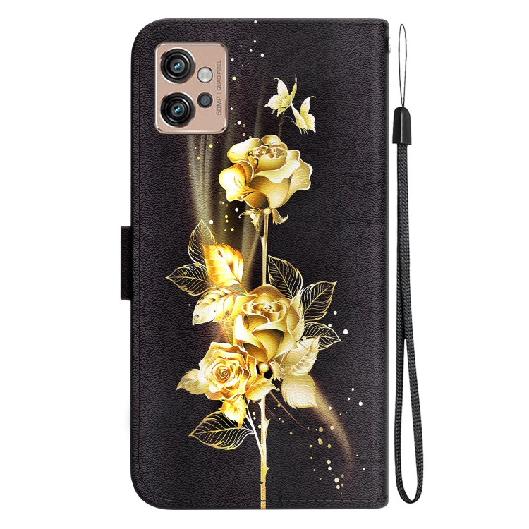 Funda de Cuero para Motorola Moto G32 con Dibujo Coloreado y Textura de Cristal (Mariposa Dorada Rosa)