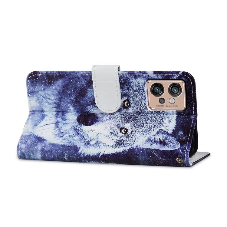 Funda de Cuero para Motorola Moto G32 con Tapa Horizontal y Patrón Pintado (Lobo Blanco)
