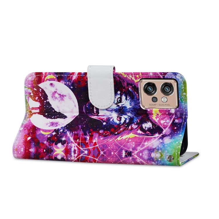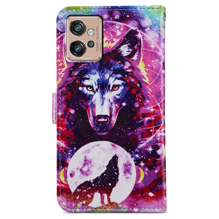 Funda de Cuero para Motorola Moto G32 con Tapa Horizontal y Patrón Tótem de Lobo