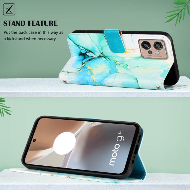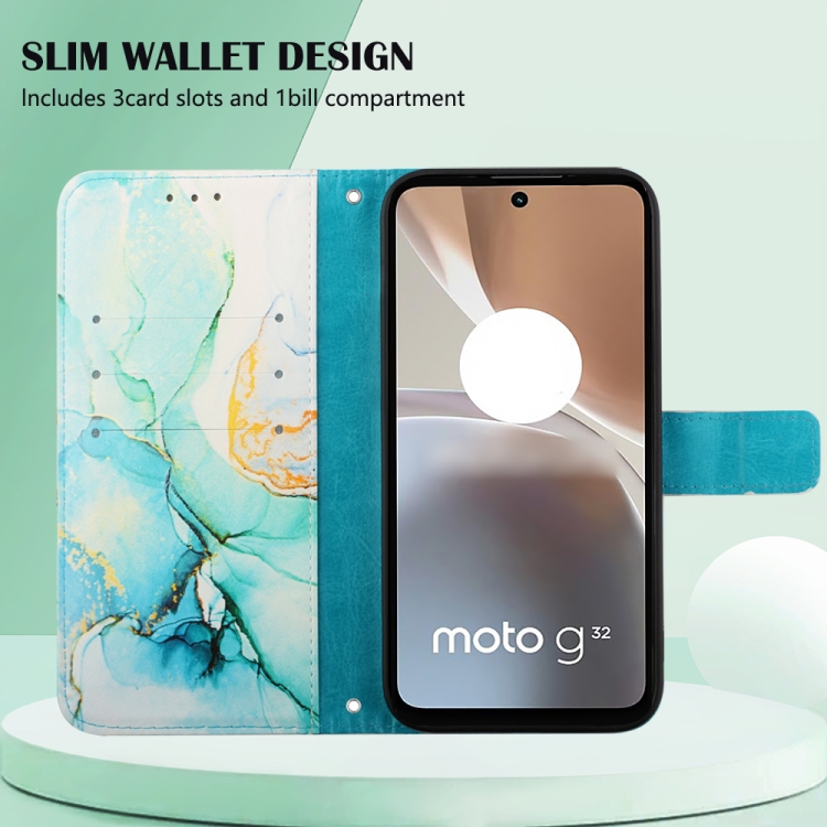 Funda de Cuero con Tapa para Motorola Moto G32 Pt003 Patrón de Mármol (Verde)