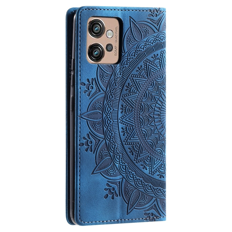 Funda de Cuero Magnética Totem para Motorola Moto G32 con Relieve (Azul)