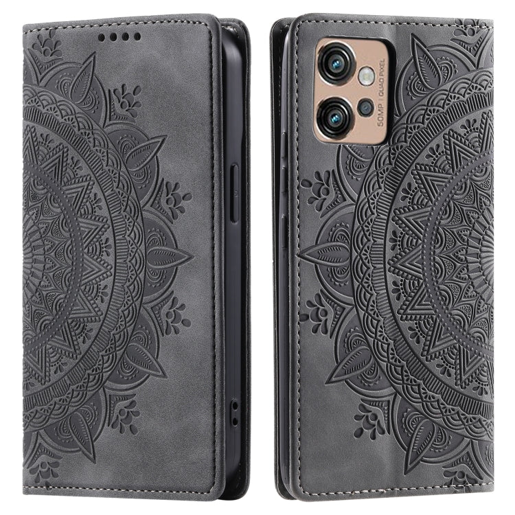 Funda de Cuero Magnética Totem para Motorola Moto G32 en Relieve (Gris)