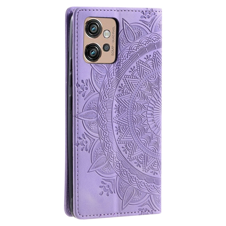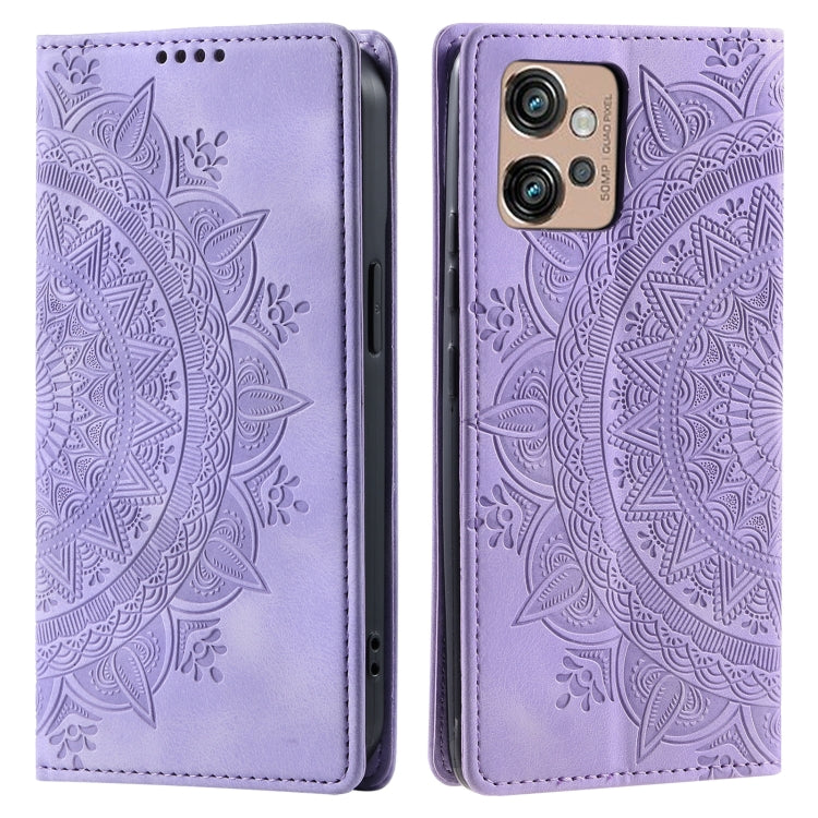Funda de Cuero Magnética Totem para Motorola Moto G32 en Relieve (Púrpura)