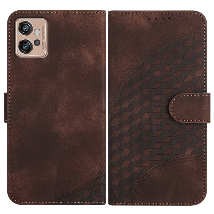 Funda de Cuero Motorola Moto G32 Yx0060 con Estampado Cabeza de Elefante y Cordón (Café)