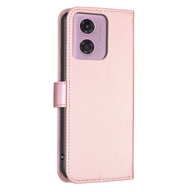Funda de Cuero para Motorola Moto G34 5G con Relieve de Cuatro Hojas (Rosa)