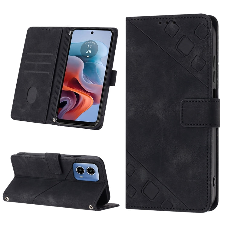 Funda de Cuero con Relieve y Sensación de Piel para Motorola Moto G34 (Negro)