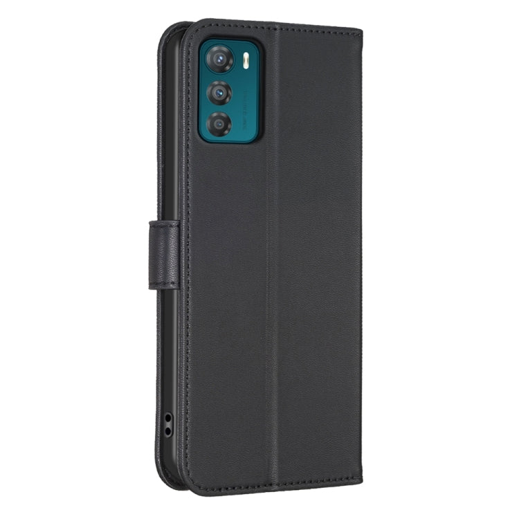 Funda de Cuero para Motorola Moto G42 con Relieve de Cuatro Hojas (Negro)