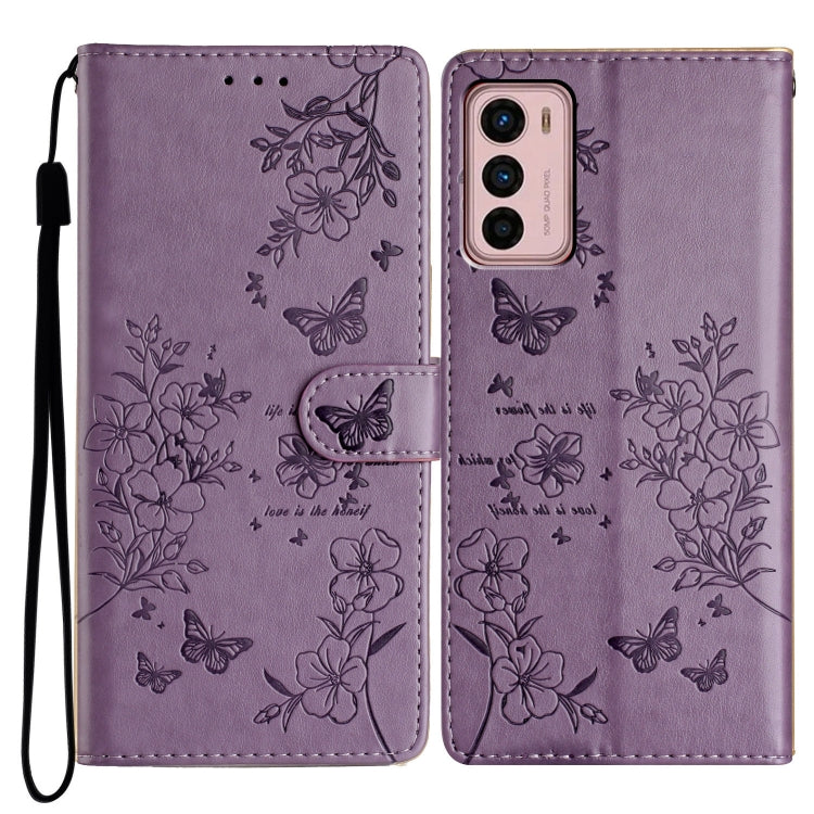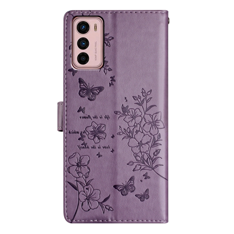 Funda de Cuero para Motorola Moto G42 con Mariposas y Flores (Púrpura)
