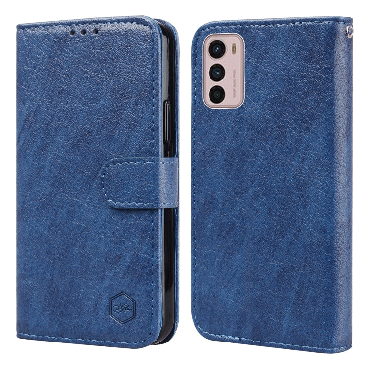 Funda para Motorola Moto G42 Sensación de Piel Textura Cuero Aceitoso PU + TPU (Azul Oscuro)