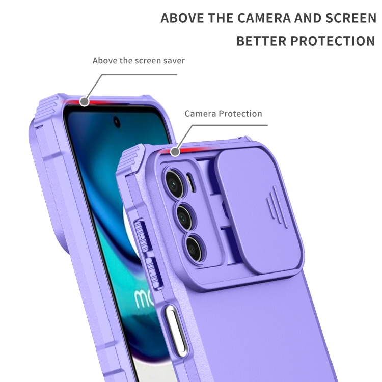 Soporte Estereoscópico Deslizante Camshield Funda para Motorola Moto G42 (Púrpura)