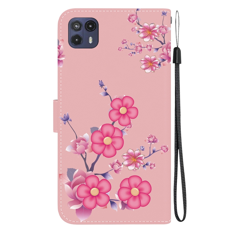 Funda de Cuero para Motorola Moto G50 5G con Dibujo Coloreado y Textura de Cristal (Flores de Cerezo)