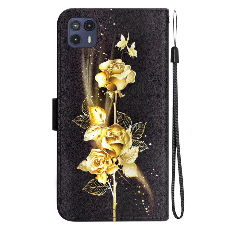 Funda de Cuero para Motorola Moto G50 5G con Dibujo Coloreado y Textura de Cristal (Mariposa Dorada Rosa)