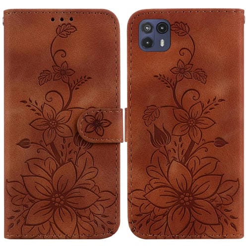 For Motorola Moto G50 5G Lily Embossed Leather Phone Case(Brown)