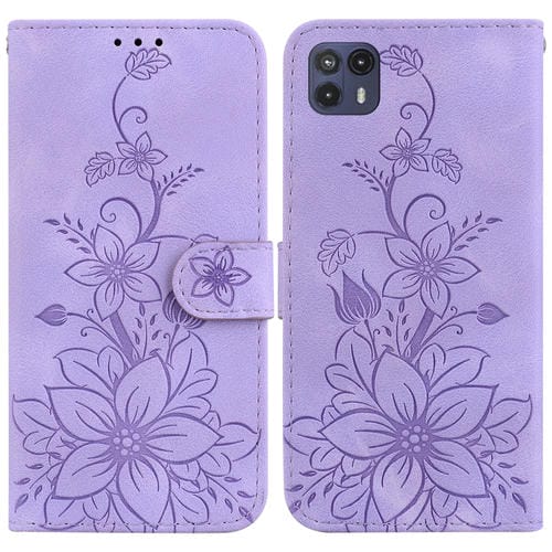 Funda para Motorola Moto G50 5G Lily de Cuero en Relieve (Púrpura)