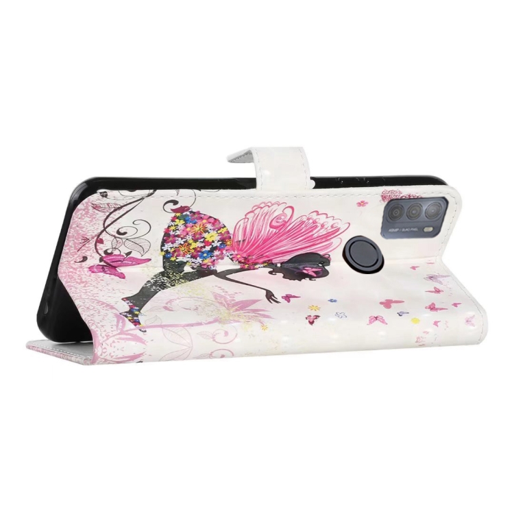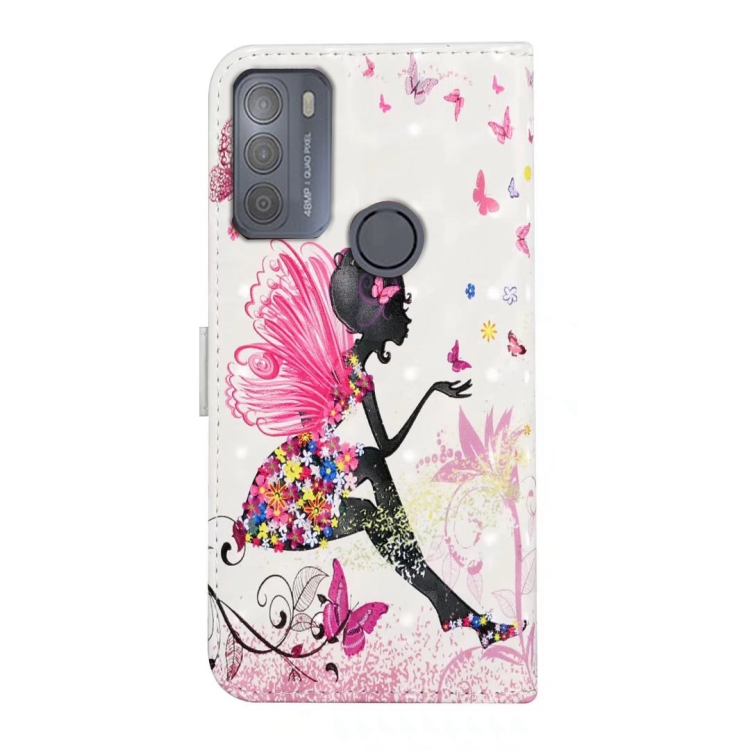 Funda de Cuero para Motorola Moto G50 con Dibujo 3D en Relieve al Óleo (Hada de Flores)
