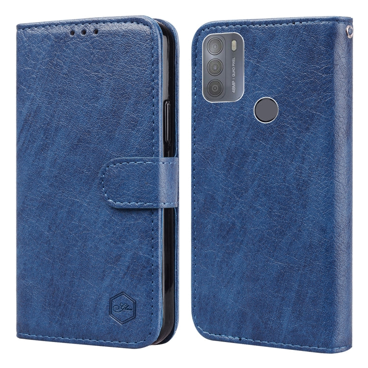 Funda para Motorola Moto G50 PU + TPU con textura de cuero aceitoso (Azul Oscuro)