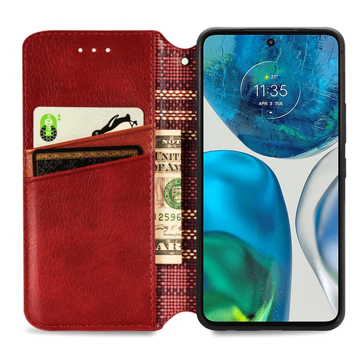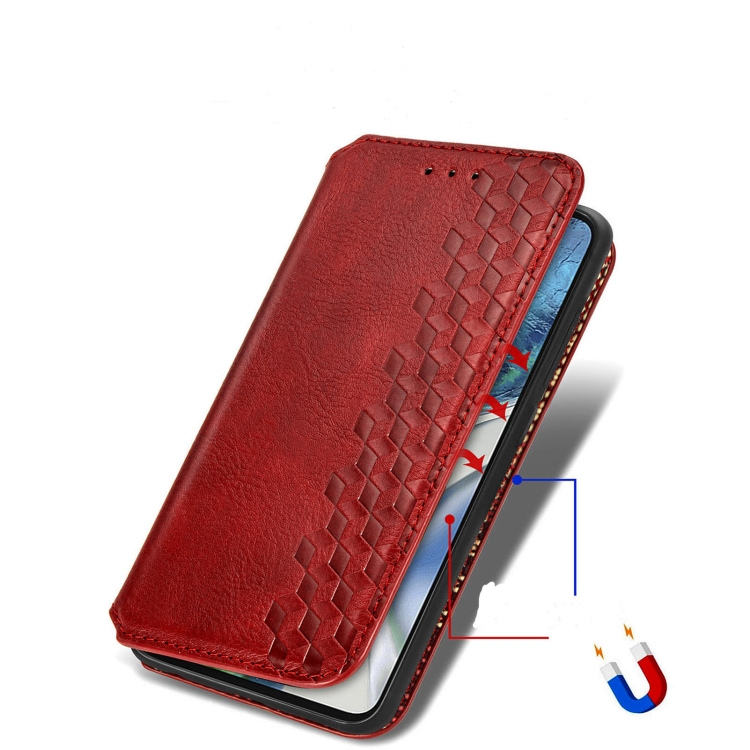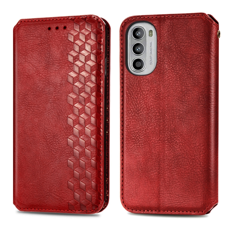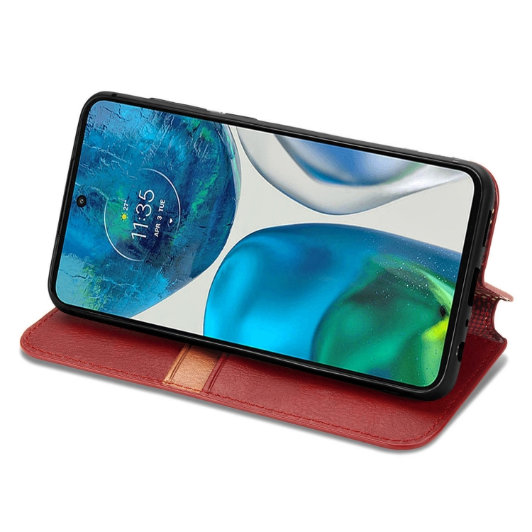 Funda para Motorola Moto G52 Cubic Grid Cuero Magnético Prensado (Rojo)