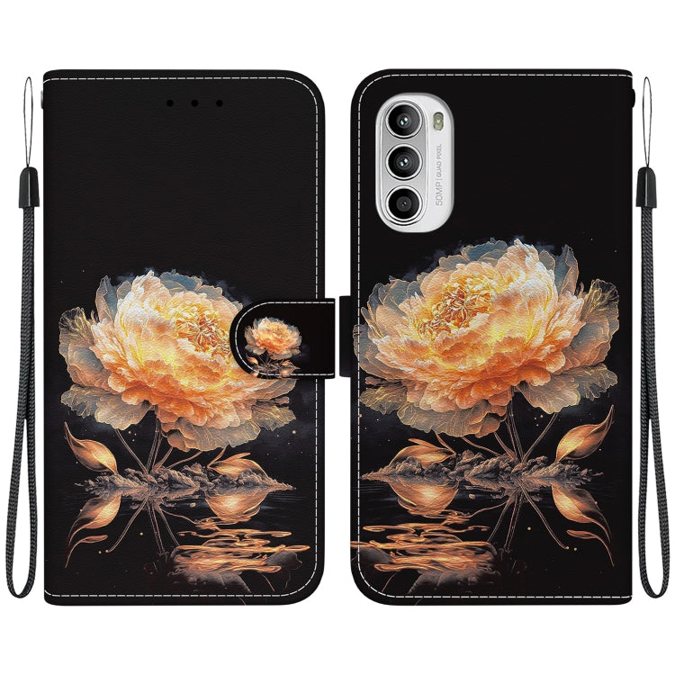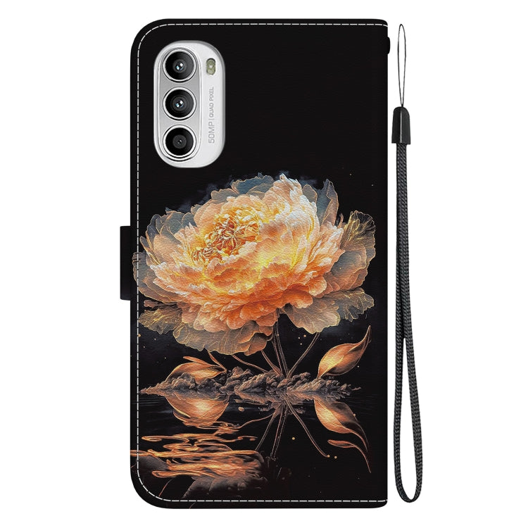 Estuche de Cuero para Motorola Moto G52 con Dibujo Coloreado y Textura de Cristal (Peonía Dorada)