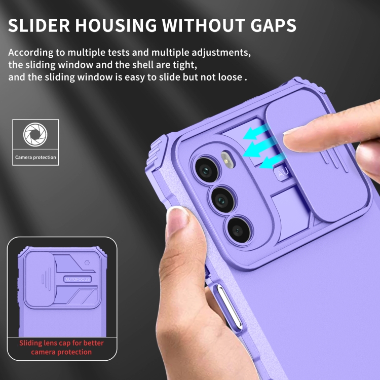 - 1x Funda para Motorola Moto G52 con Soporte estereoscópico deslizante y Camshield (Púrpura)