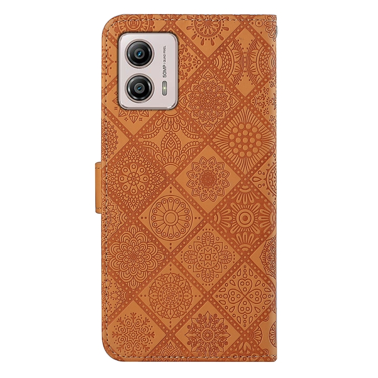 Funda de Teléfono Motorola Moto G53 Cuero con Patrón en Relieve Estilo Étnico (Marrón)