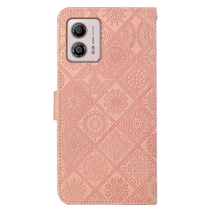 Funda de Cuero para Motorola Moto G53 con Patrón en Relieve Estilo Étnico (Rosa)