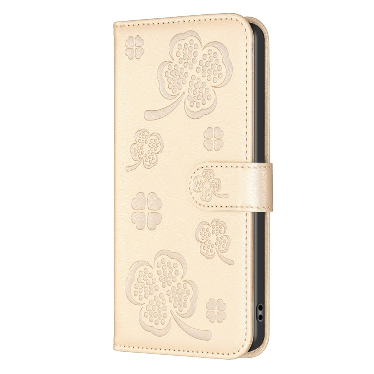 Funda para Motorola Moto G54 5G Eu Edition de Cuero con Relieve de Cuatro Hojas (Dorado)