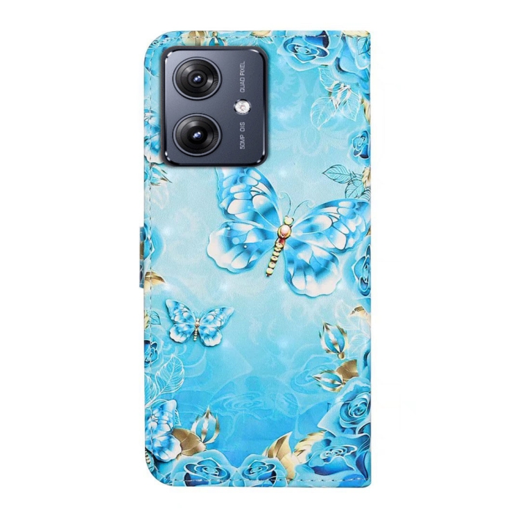 Funda de Cuero para Motorola Moto G54 5G con Dibujo 3D en Relieve al Óleo (Mariposas Azules)