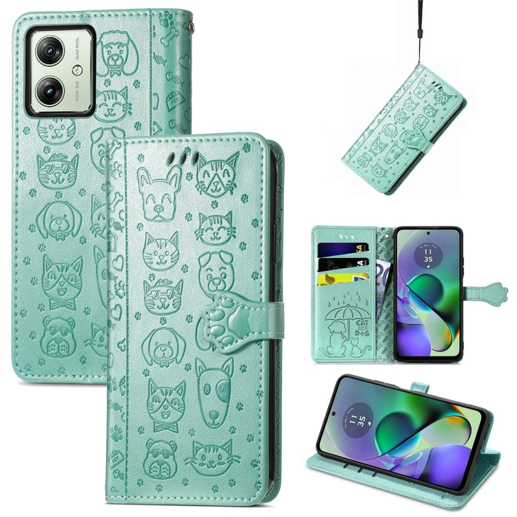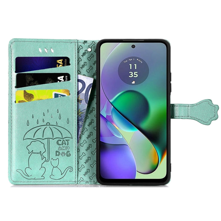 Funda para Motorola Moto G54 5G de Cuero con Relieve de Gato y Perro (Verde)