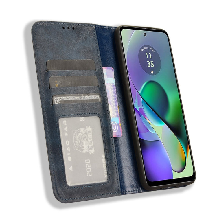 - 1x Funda para Motorola Moto G54 5G de Cuero con Textura Retro y Hebilla Magnética (Azul)