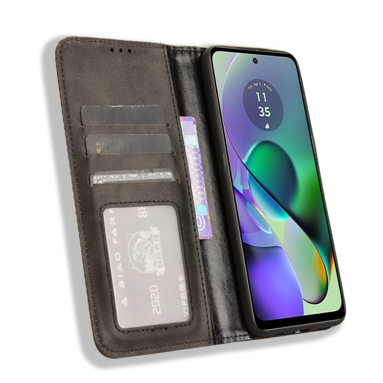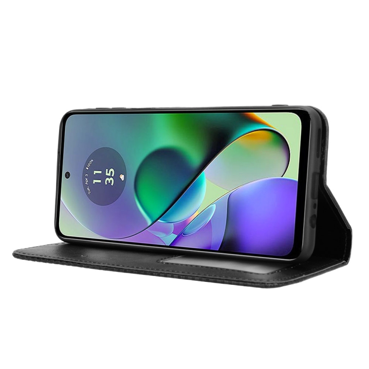 - 1x Funda para Motorola Moto G54 5G de Cuero con Textura Retro y Hebilla Magnética (Negro)