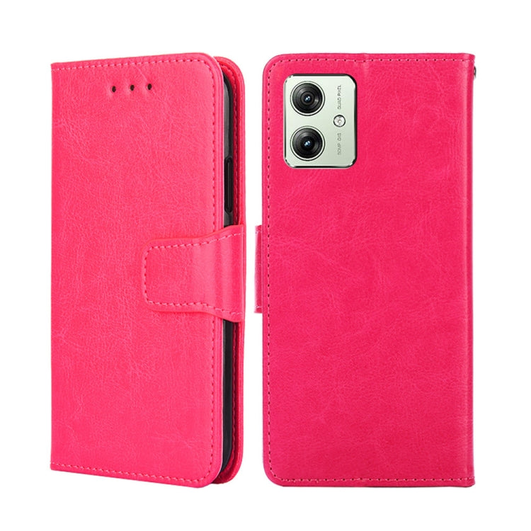 Funda de Cuero para Motorola Moto G54 5G Versión UE con Textura de Cristal (Rojo Rosa)