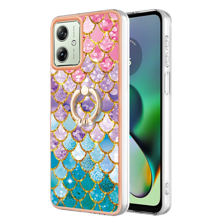 Funda TPU Imd con Galvanoplastia y Anillo para Motorola Moto G54 (Escamas de Colores)