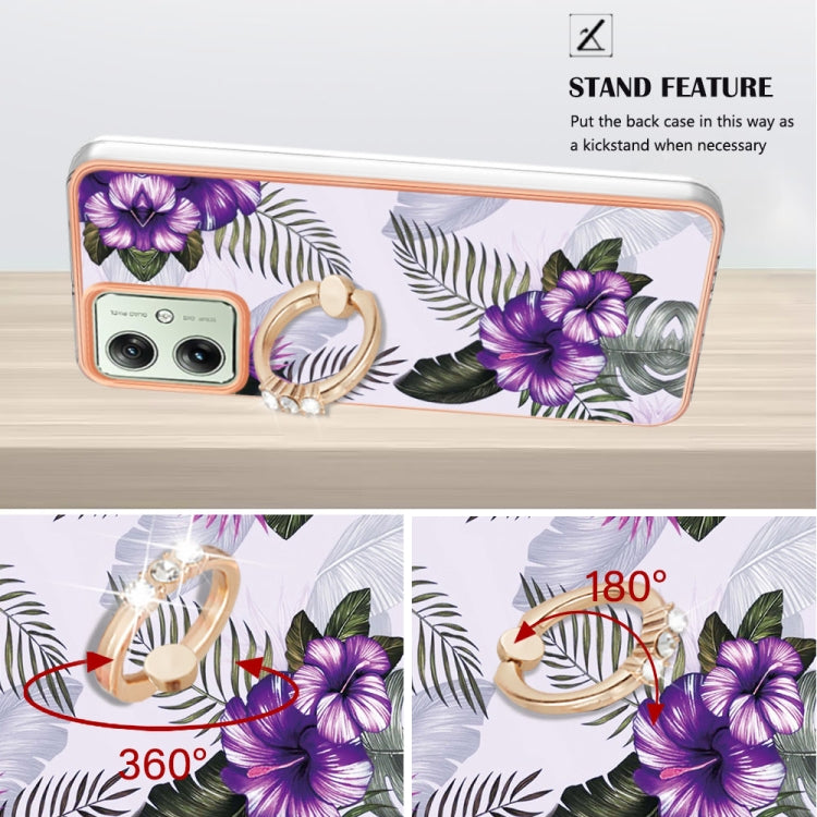 Funda para Motorola Moto G54 TPU con Galvanoplastia y Anillo (Flor Púrpura)
