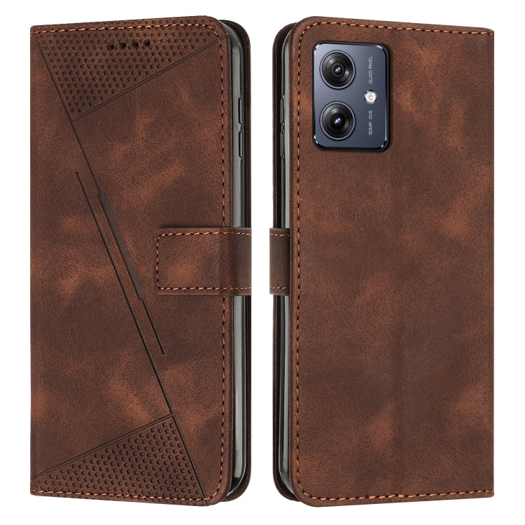 Funda de Cuero para Motorola Moto G54 Dream Triangle con Cordón (Marrón)