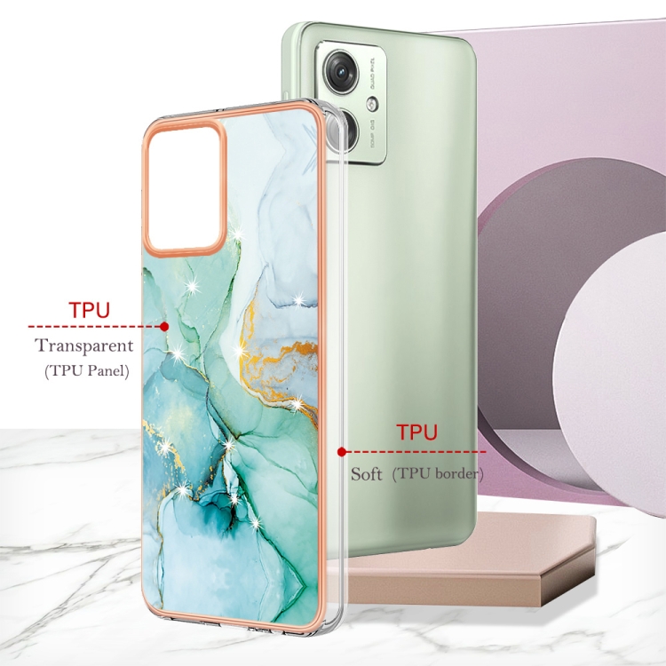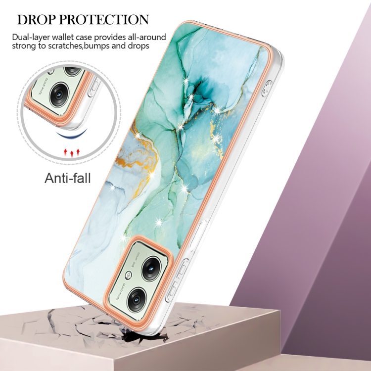 El estuche para Teléfono Motorola Moto G54 con diseño IMD de doble cara y patrón de mármol galvanizado en color Verde es un accesorio diseñado para ofrecer una protección integral al dispositivo. Fabricado con materiales TPU y PC, combina resistencia al desgaste y a los arañazos con una estructura ligera y compacta. Este estuche garantiza un ajuste preciso, permitiendo el acceso sin obstáculos a todos los Botones, Puertos y funciones del Moto G54, asegurando así su funcionalidad Completa mientras protege el Teléfono contra impactos, suciedad y uso diario.