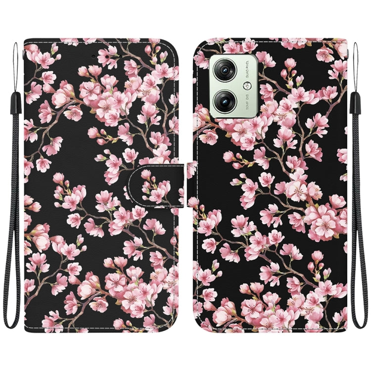 Funda de Cuero para Motorola Moto G54 con Dibujo Coloreado y Textura de Cristal (Flor de Ciruelo)