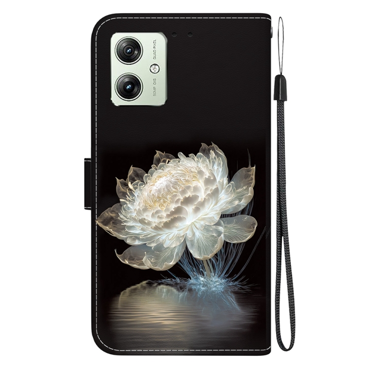 Funda de Cuero para Motorola Moto G54 con Dibujo Coloreado y Textura de Cristal (Peonía)