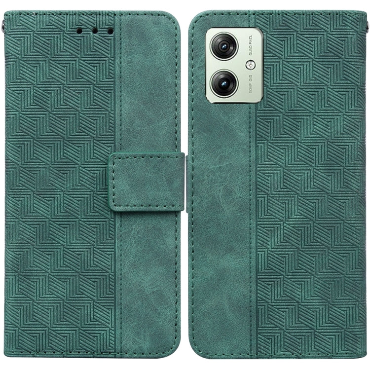 Funda de Cuero para Motorola Moto G54 con Relieve Geométrico (Verde)