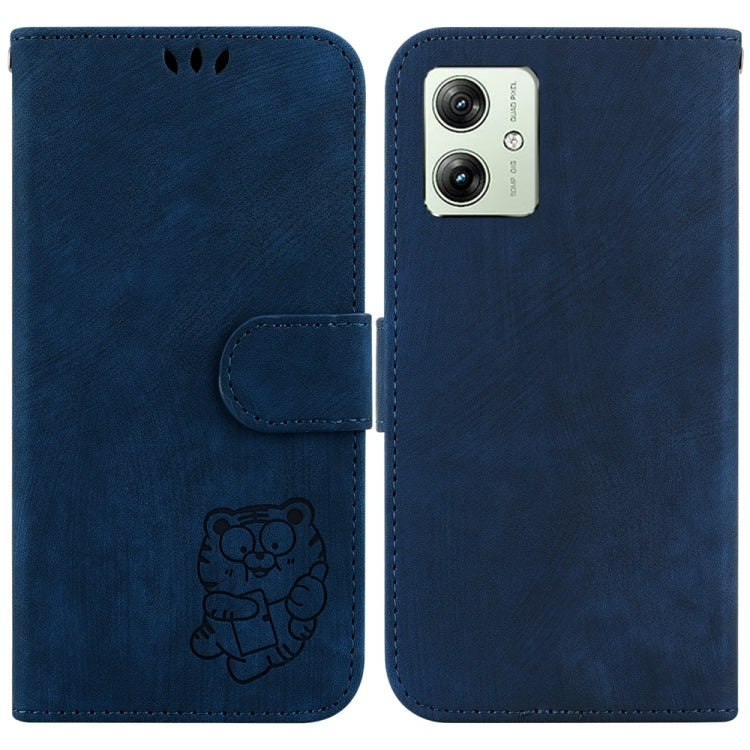 Funda de Cuero Motorola Moto G54 con Relieve Little Tiger (Azul Oscuro)