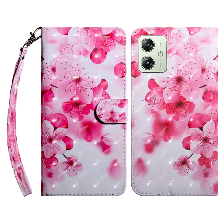 Funda de Cuero pintada 3D para Motorola Moto G54 (Flor Roja)