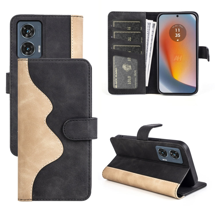 Funda de Cuero para Motorola Moto G54 con Tapa Horizontal y Costura (Negro)