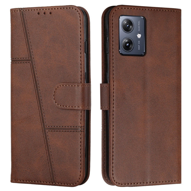 Funda para Motorola Moto G54 de Cuero con Hebilla y Textura de Becerro (Marrón)